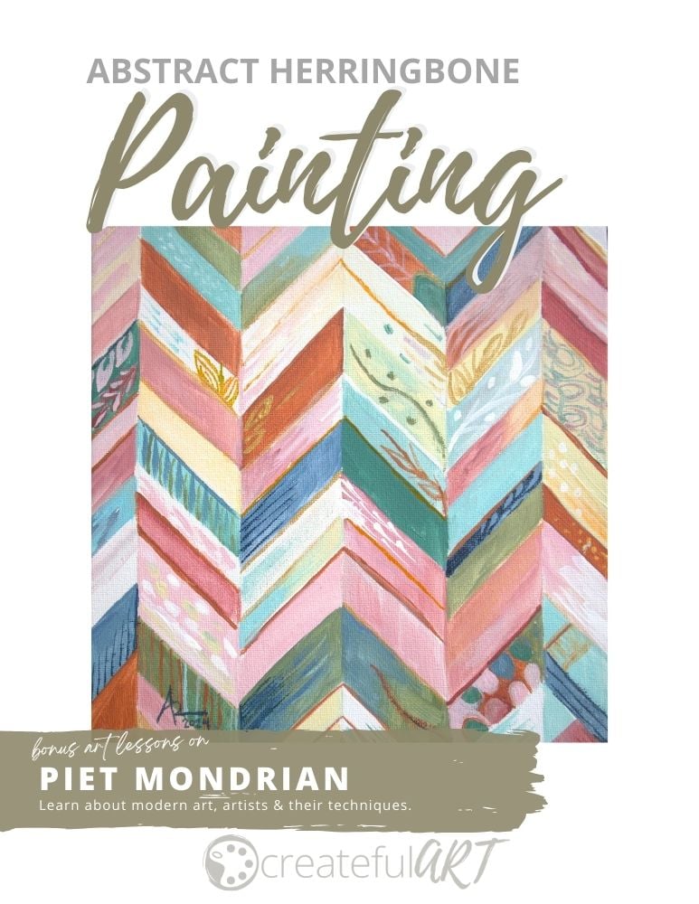 Learn how to paint an Abstract Herringbone painting, inspired by the abstract paintings of Piet Mondrian and other abstract artists in this acrylic painting workshop.