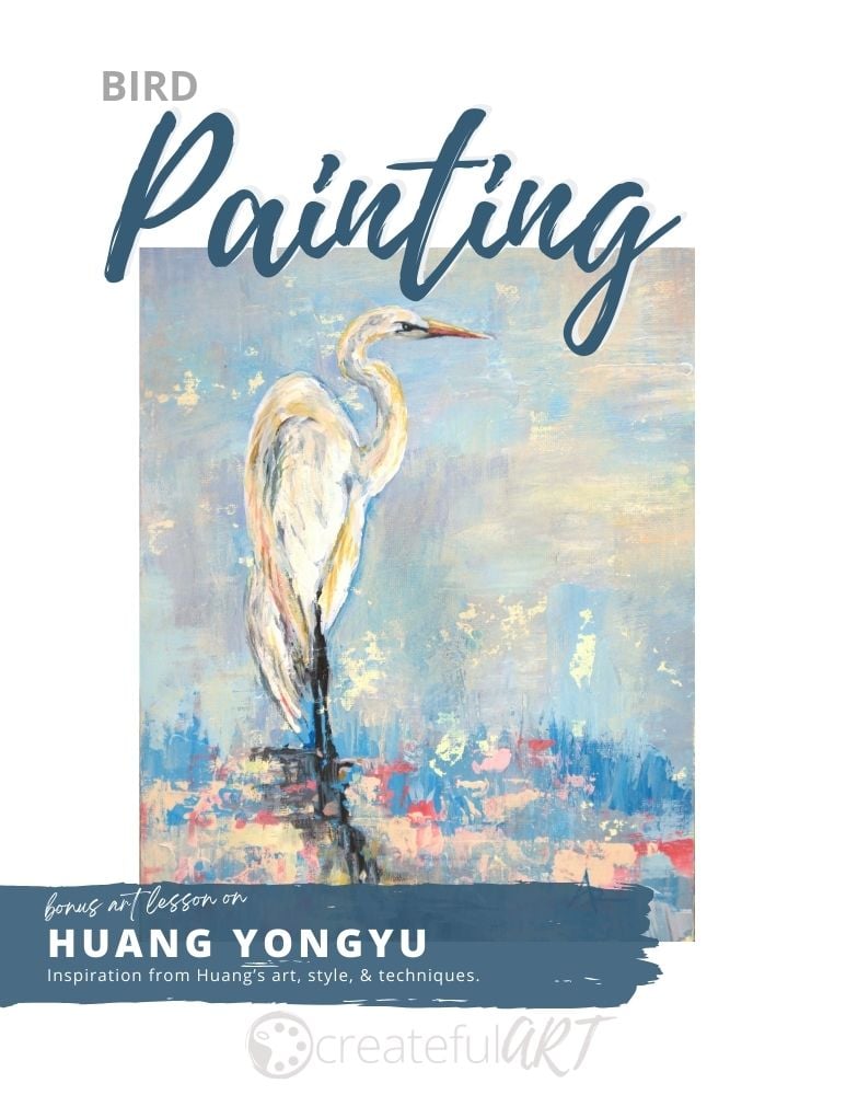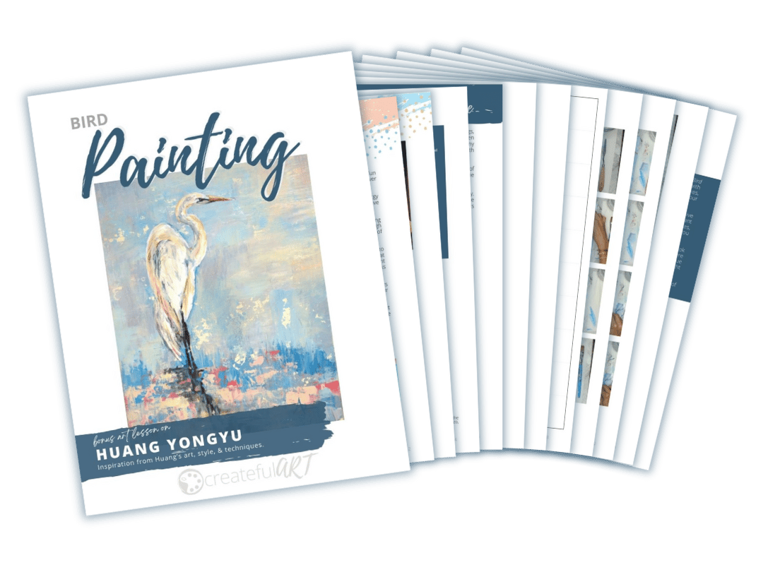 You, as the artist, will have complete creative control to follow along as you paint your bird painting. Or, express yourself and be creative by choosing the colors, design, textures, and brushstrokes to paint your bird and background. Allowing the artist to be creative while learning about art is what Createful Art is all about. Let’s start creating!