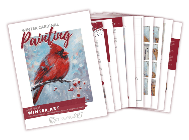 You, as the artist, will have complete creative control to follow along as you paint your playful rooster painting. Or, express yourself and be creative by choosing the colors, design, textures, and brushstrokes to paint your rooster, feathers, and background. Allowing the artist to be creative while learning about art is what Createful Art is all about. Let’s start creating!