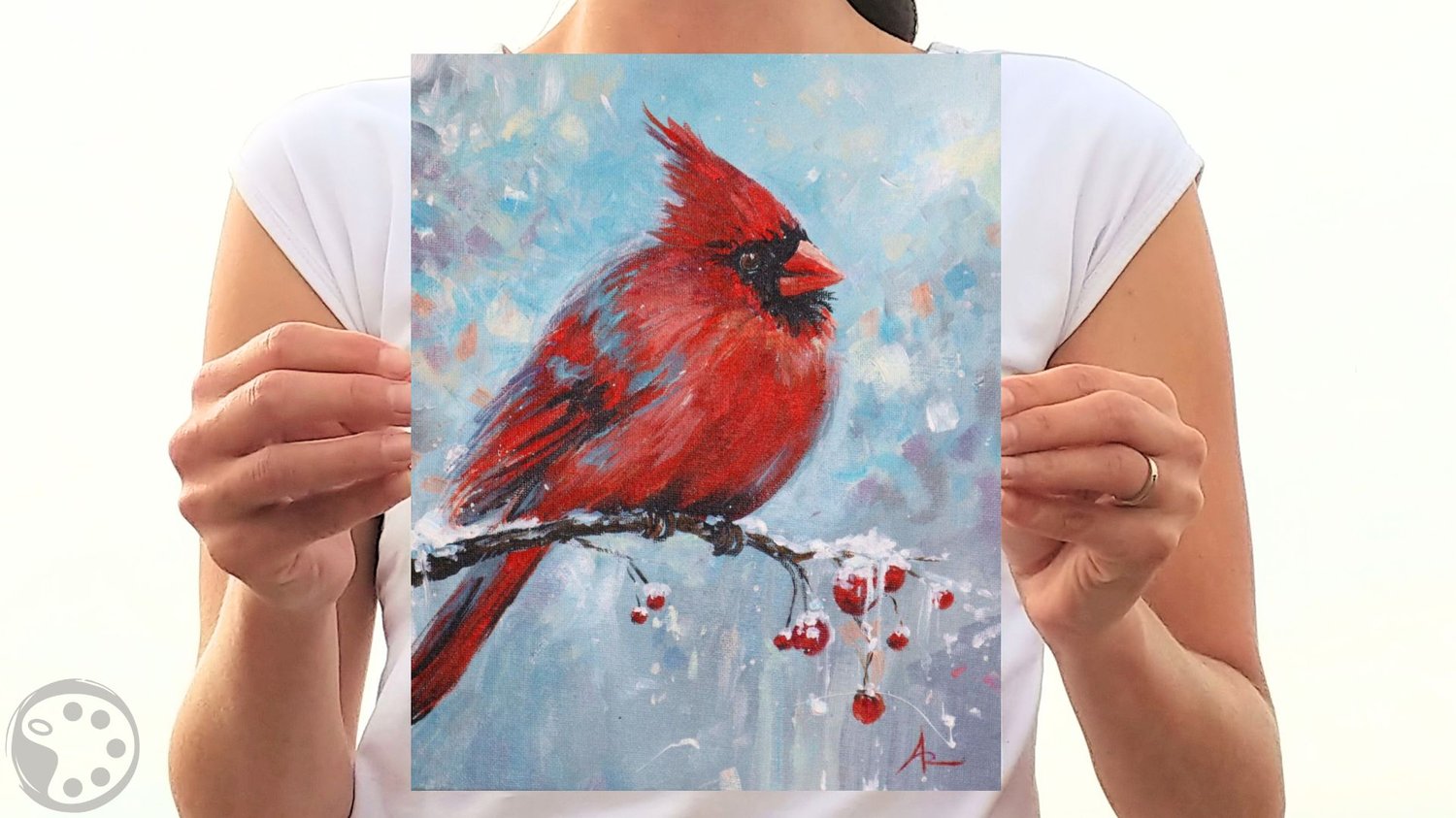 Learn how to paint a colorful winter scene with a red cardinal in this Winter Cardinal painting.